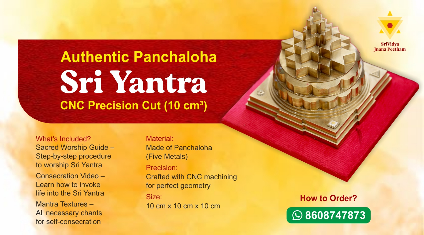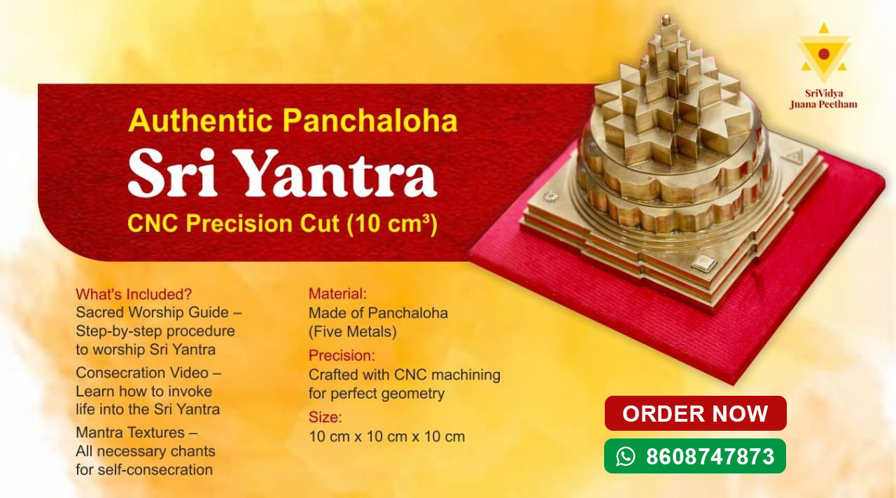 By understanding the true self through the teachings of Srividya, life automatically becomes disciplined, and there is freedom from miseries and sorrows. Life is gratefully accepted, and the realization dawns that there is no difference between the individual and the all-pervading universal energy.